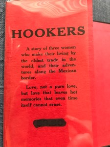 “Hookers” is a novel that follows the adventures of Pearl as she breaks into the business of being a prostitute in the border town of Juarez. Filled with details about El Paso, the border, bars, nightspots and other locations and flavor of the area, it would be a subject Ray would have been familiar with, since he grew up on the area. We also know that he worked in clubs in Juarez and El Paso at various points in his career.